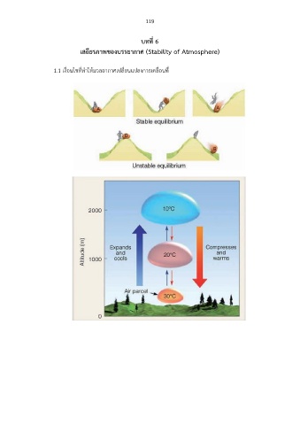 119 บทที่ 6 เสถียรภาพของบรรยากาศ (Stability of Atmosphere) 1.1 เงื่อนไขที่ท้าให้มวลอากาศเปลี่ยนแปลงการเคลื่อนท ี่