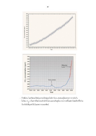 87 - ก๊าซมีเทน ไนตรัสออกไซด์และคลอโรฟลูออไรด์คาร์บอน สะสมอยู่ในบรรยากาศ เช่นกัน - โอโซน (O ) เป็นสารที่พบในระดับต่้าผิวโลกและระดับสูงในบรรยากาศชั้นสตราโทสเฟียร์ซึ่งช่วย 2 ป้องกันรังสอุลตร้าไวโอเลตจากดวงอาทิตย์ ี