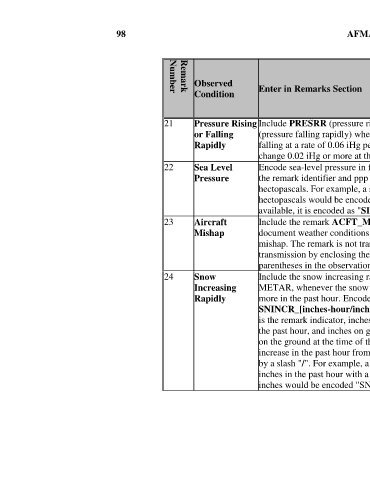 21 Pressure Rising Include PRESRR (pressure rising rapidly) or PRESFR X X X