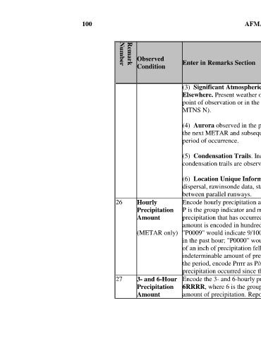 26 Hourly Encode hourly precipitation amount in format, Prrrr, where X O
