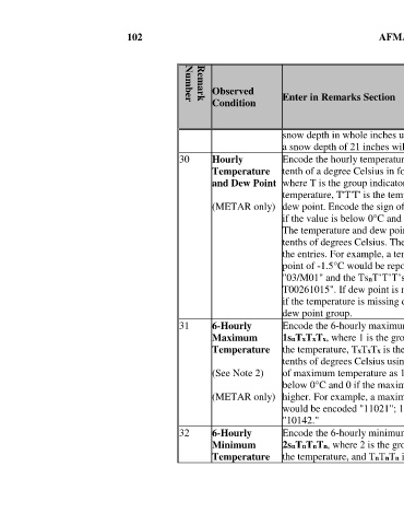 30 Hourly Encode the hourly temperature and dew point group to the X O