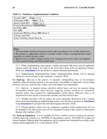 5.2.1. When supplementing observations, weather personnel will ensure that all applicable