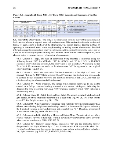 Figure 6.1. Example AF Form 3803 (JET Form 3813) Synoptic and Summary of the Day
