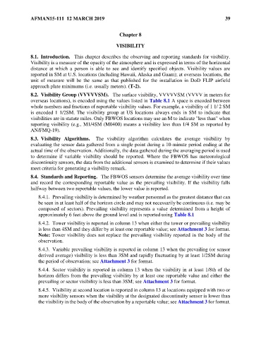8.1. Introduction. This chapter describes the observing and reporting standards for visibility.