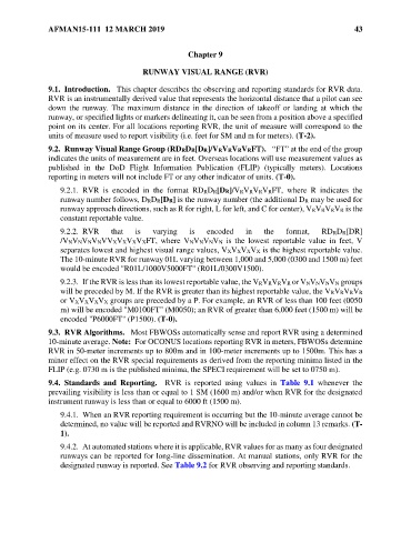 9.1. Introduction. This chapter describes the observing and reporting standards for RVR data.