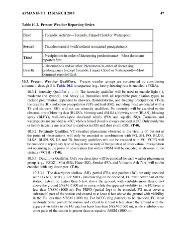 10.3. Present Weather Qualifiers. Present weather groups are constructed by considering