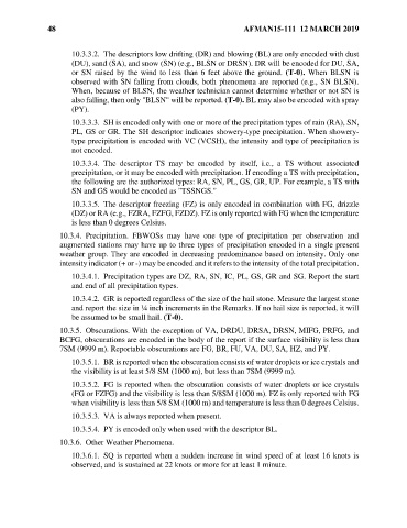 also falling, then only "BLSN" will be reported. (T-0). BL may also be encoded with spray