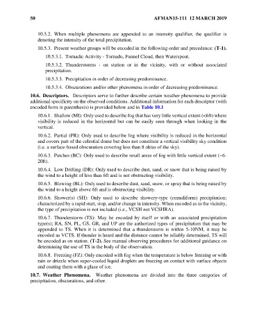 10.5.3. Present weather groups will be encoded in the following order and precedence: (T-1).