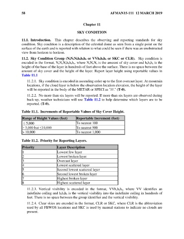 Table 11.1. Increments of Reportable Values of Sky Cover Height.