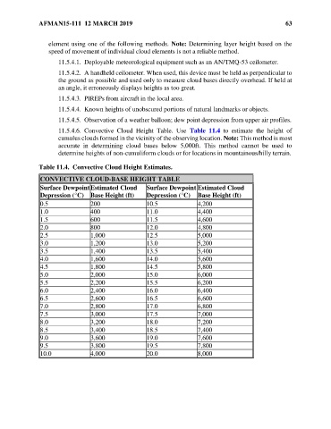 Table 11.4. Convective Cloud Height Estimates.
