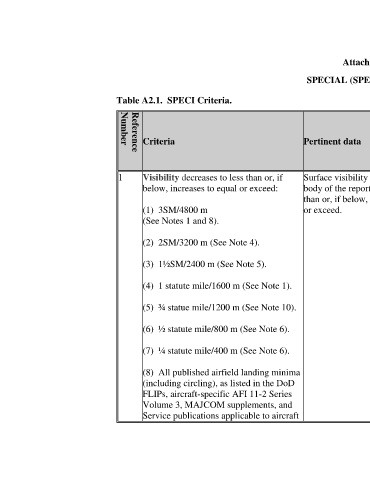 SPECIAL (SPECI) CRITERIA