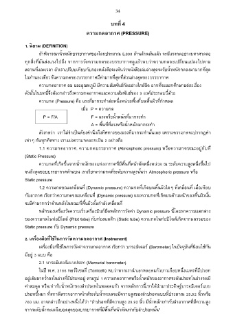 1.1 ความกดอากาศ, ความกดบรรยากาศ (Atmospheric pressure) หรือความกดขณะอยู่กับที ่