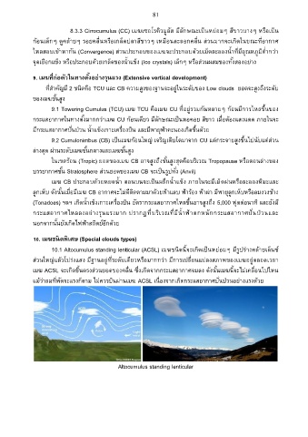 10.1 Altocumulus standing lenticular (ACSL) เมฆชนิดนีจะเกิดเปนหย่อมๆ มีรูปร่างคล้ายเล็นซ์