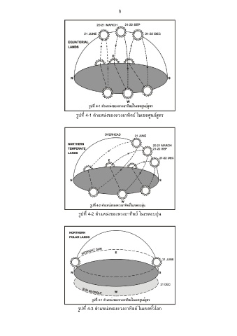 8 ่ ่ รูปที 4-1 ต าแหนงของดวงอาทิตย์ ในเขตศูนย์สูตร ่ รูปที 4-2 ต าแหนงของดวงอาทิตย์ ในเขตอบอุ่น ่ รูปที 4-3 ต าแหนงของดวงอาทิตย์ ในเขตขั้วโลก ่ ่