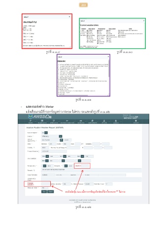 213 รูปที่ ๓.๑.๙ รูปที่ ๓.๑.๑๐ รูปที่ ๓.๑.๑๑ - แสดงจอส่งข่าว Metar แจ้งเตือนกรณีที่กรอกข้อมูลข่าว Metar ไม่ครบ จะแสดงดังรูปที่ ๓.๑.๑๒ ื่ กรณคลิกปุม Save เมื่อกรอกข้อมูลในช่องที่มีเครองหมาย * ไม่ครบ ี ่ รูปที่ ๓.๑.๑๒