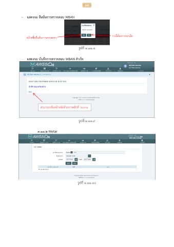 245 - แสดงจอ ยืนยันการตรวจสอบ WBAN คลิกเพื่อยืนยันการตรวจสอบ กรณีต้องการยกเลิก รูปที่ ๓.๑๑.๘ - แสดงจอ บันทึกการตรวจสอบ WBAN ส้าเร็จ ้ สามารถกลับหนาหลักด้วยการคลิกที่ home รูปที่ ๓.๑๑.๙ ๓.๑๑.๒ Metar รูปที่ ๓.๑๑.๑๐