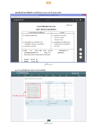 265 - แสดงตัวอย่างการพิมพ์ข่าวแจ้งเตือนสภาพอากาศบริเวณสนามบิน รูปที่ ๔.๖.๖ ๔.๗ ข่าวแจ้งเตือนสภาพอากาศประเทศไทย คลิกเพื่อดูรายละเอียด รูปที่ ๔.๗.๑