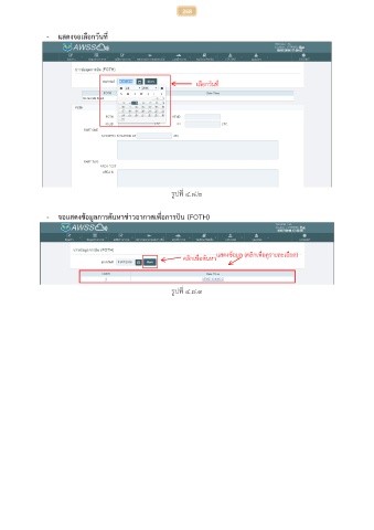 268 - แสดงจอเลือกวันที่ เลือกวันที่ รูปที่ ๔.๘.๒ - จอแสดงข้อมูลการค้นหาข่าวอากาศเพื่อการบิน (FOTH) คลิกเพื่อค้นหา แสดงข้อมูล (คลิกเพื่อดูรายละเอียด) รูปที่ ๔.๘.๓