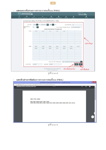 274 - แสดงผลการค้นหาผลการตรวจอากาศลมชั้นบน (PIBAL) แสดงข้อมูล คลิกเพื่อย้อนกลับ คลิกเพื่อพิมพ ์ รูปที่ ๔.๑๐.๕ ข้อมูล - แสดงตัวอย่างการพิมพ์ผลการตรวจอากาศลมชั้นบน (PIBAL) รูปที่ ๔.๑๐.๖