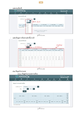 288 - แสดงจอเลือกปี เลือกปี รูปที่ ๕.๑.๑๑ - แสดงข้อมูลการค้นหาลมผิวพื้นรายปี แสดงข้อมูล คลิกเพื่อค้นหา รูปที่ ๕.๑.๑๒ ๕.๒ ข้อมูลจ้านวนเมฆ ๕.๒.๑ ข้อมูลจ้านวนเมฆรายเดือน รูปที่ ๕.๒.๑