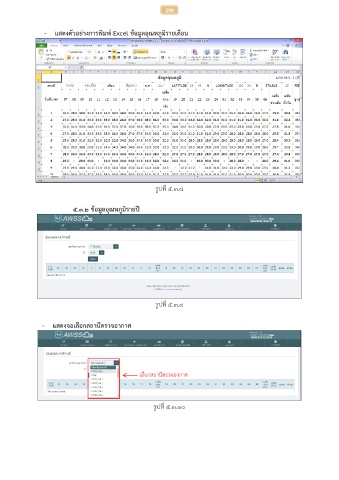 299 - แสดงตัวอย่างการพิมพ์ Excel ข้อมูลอุณหภูมิรายเดือน รูปที่ ๕.๓.๘ ๕.๓.๒ ข้อมูลอุณหภูมิรายปี รูปที่ ๕.๓.๙ - แสดงจอเลือกสถานีตรวจอากาศ เลือกสถานีตรวจอากาศ รูปที่ ๕.๓.๑๐