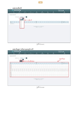 300 - แสดงจอเลือกปี เลือกปี รูปที่ ๕.๓.๑๐ - แสดงข้อมูลการค้นหาอุณหภูมิรายปี แสดงข้อมูล คลิกเพื่อค้นหา รูปที่ ๕.๓.๑๑