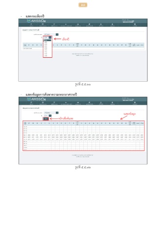 310 - แสดงจอเลือกปี เลือกปี รูปที่ ๕.๕.๑๑ - แสดงข้อมูลการค้นหาความกดอากาศรายปี แสดงข้อมูล คลิกเพื่อค้นหา รูปที่ ๕.๕.๑๒