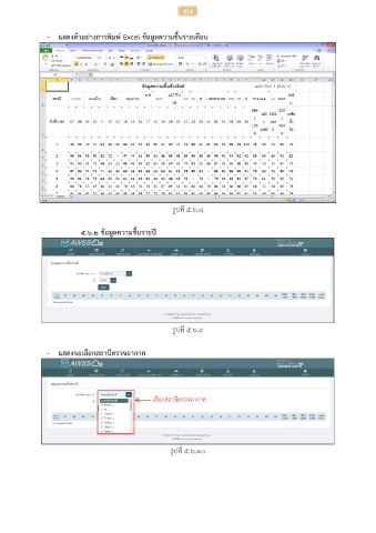 314 - แสดงตัวอย่างการพิมพ์ Excel ข้อมูลความชื้นรายเดือน รูปที่ ๕.๖.๘ ๕.๖.๒ ข้อมูลความชื้นรายปี รูปที่ ๕.๖.๙ - แสดงจอเลือกสถานีตรวจอากาศ เลือกสถานีตรวจอากาศ รูปที่ ๕.๖.๑๐
