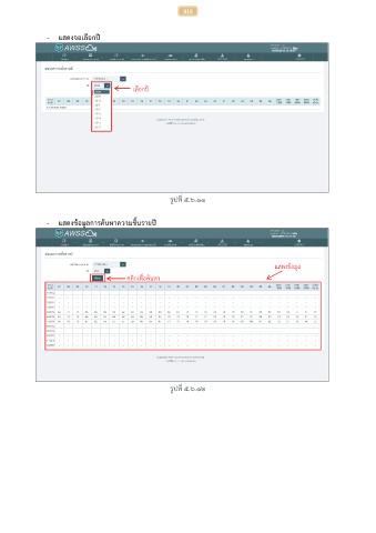 315 - แสดงจอเลือกปี เลือกปี รูปที่ ๕.๖.๑๑ - แสดงข้อมูลการค้นหาความชื้นรายปี แสดงข้อมูล คลิกเพื่อค้นหา รูปที่ ๕.๖.๑๒