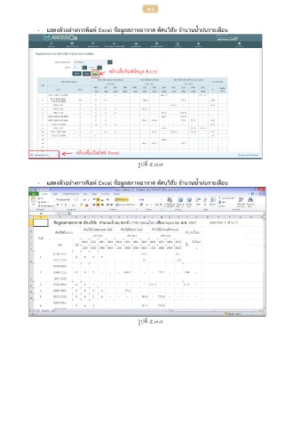 318 - แสดงตัวอย่างการพิมพ์ Excel ข้อมูลสภาพอากาศ ทัศนวิสัย จ้านวนน้้าฝนรายเดือน คลิกเพื่อพิมพ์ข้อมูล Excel คลิกเพื่อเปิดไฟล์ Excel รูปที่ ๕.๗.๗ - แสดงตัวอย่างการพิมพ์ Excel ข้อมูลสภาพอากาศ ทัศนวิสัย จ้านวนน้้าฝนรายเดือน รูปที่ ๕.๗.๘