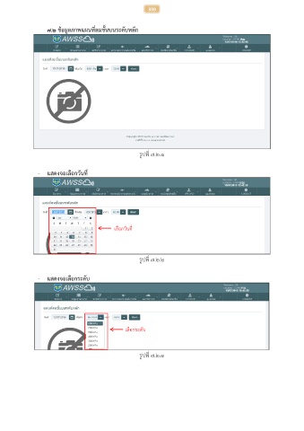339 ๗.๒ ข้อมูลภาพแผนที่ลมชั้นบนระดับหลัก รูปที่ ๗.๒.๑ - แสดงจอเลือกวันที่ เลือกวันที่ รูปที่ ๗.๒.๒ - แสดงจอเลือกระดับ เลือกระดับ รูปที่ ๗.๒.๓
