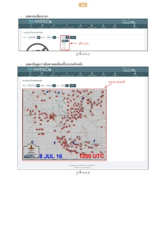 340 - แสดงจอเลือกเวลา เลือกเวลา รูปที่ ๗.๒.๔ - แสดงข้อมูลการค้นหาแผนที่ลมชั้นบนระดับหลัก แสดงภาพแผนที่ รูปที่ ๗.๒.๕