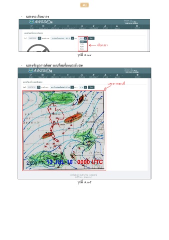 342 - แสดงจอเลือกเวลา เลือกเวลา รูปที่ ๗.๓.๔ - แสดงข้อมูลการค้นหาแผนที่ลมชั้นบนระดับรอง แสดงภาพแผนที่ รูปที่ ๗.๓.๕