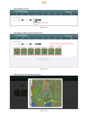 350 - แสดงจอเลือกเวลานาที เลือกนาท ี รูปที่ ๗.๗.๔ - แสดงข้อมูลการค้นหาภาพเรดาร์ตรวจอากาศ แสดงภาพแผนที่สามารถคลิกเพื่อดูภาพขนาด ใหญ่ได ้ รูปที่ ๗.๗.๕ - แสดงจอภาพเรดาร์ตรวจอากาศขนาดใหญ ่ รูปที่ ๗.๗.๖