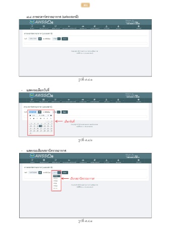 351 ๗.๘ ภาพเรดาร์ตรวจอากาศ (แต่ละสถานี) รูปที่ ๗.๘.๑ - แสดงจอเลือกวันที่ เลือกวันที่ รูปที่ ๗.๘.๒ - แสดงจอเลือกสถานีตรวจอากาศ เลือกสถานีตรวจอากาศ รูปที่ ๗.๘.๓