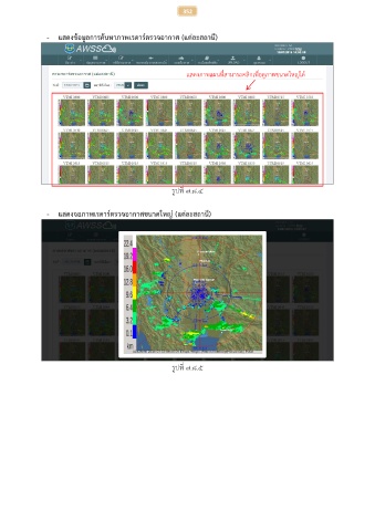 352 - แสดงข้อมูลการค้นหาภาพเรดาร์ตรวจอากาศ (แต่ละสถานี) แสดงภาพแผนที่สามารถคลิกเพื่อดูภาพขนาดใหญ่ได ้ รูปที่ ๗.๘.๔ - แสดงจอภาพเรดาร์ตรวจอากาศขนาดใหญ่ (แตละสถานี) ่ รูปที่ ๗.๘.๕