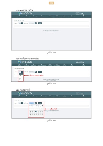 353 ๗.๙ ภาพถ่ายดาวเทียม รูปที่ ๗.๙.๑ - แสดงจอเลือกประเภทภาพถ่าย เลือกประเภทภาพถ่าย รูปที่ ๗.๙.๒ - แสดงจอเลือกวันที่ เลือกวันที่ รูปที่ ๗.๙.๓