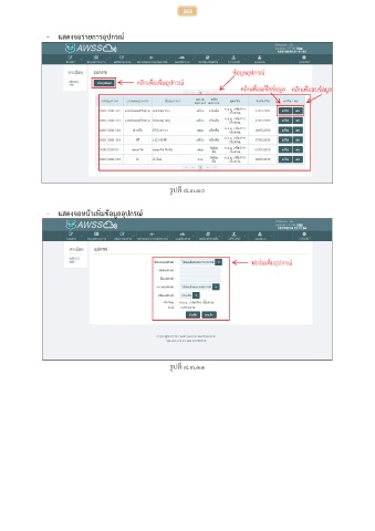 363 - แสดงจอรายการอุปกรณ์ ข้อมูลอุปกรณ์ คลิกเพื่อเพิ่มอุปกรณ์ คลิกเพื่อแก้ไขข้อมูล คลิกเพื่อลบข้อมูล รูปที่ ๘.๓.๑๐ - แสดงจอหน้าเพิ่มข้อมูลอุปกรณ์ ฟอร์มเพิ่มอุปกรณ์ รูปที่ ๘.๓.๑๑
