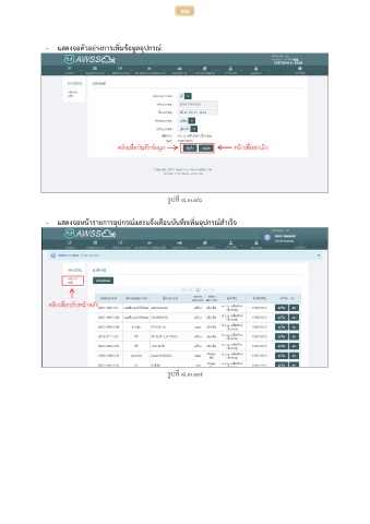 366 - แสดงจอตัวอย่างการเพิ่มข้อมูลอุปกรณ์ คลิกเพื่อบันทึกข้อมูล คลิกเพื่อยกเลิก รูปที่ ๘.๓.๑๖ - แสดงจอหน้ารายการอุปกรณ์และแจ้งเตือนบันทึกเพิ่มอุปกรณ์ส้าเร็จ คลิกเพื่อกลับหน้าหลัก รูปท ๘.๓.๑๗ ี่