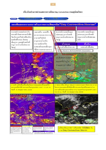 37 หรือ ตัวอย่างภาพถ่ายเมฆจากดาวเทียม Day Convective กรมอุตุนิยมวิทยา แถบสีแสดงความหมาย ของเมฆทปรากฏในภาพ ี่ ี ถ่านเมฆจากดาวเทยม ๙. ภาพถ่ายเมฆจากดาวเทียมชนิด IR + NWP (SFC winds+ psea) ตัวอย่างภาพถ่ายเมฆจากดาวเทียม SUREFACE (WIND+PSEA)