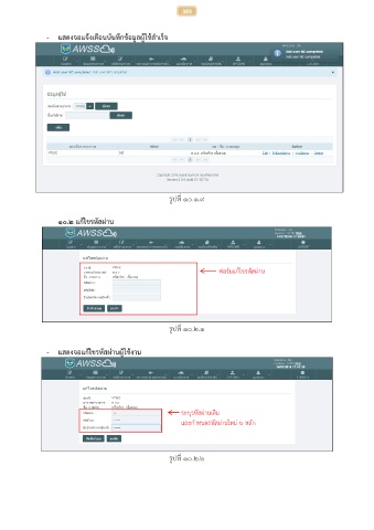 383 - แสดงจอแจ้งเตือนบันทึกข้อมูลผู้ใช้ส้าเร็จ รูปที่ ๑๐.๑.๙ ๑๐.๒ แก้ไขรหัสผ่าน ฟอร์มแก้ไขรหัสผ่าน รูปที่ ๑๐.๒.๑ - แสดงจอแก้ไขรหัสผ่านผู้ใช้งาน ระบุรหัสผ่านเดิม และก าหนดรหัสผ่านใหม่ ๖ หลัก รูปที่ ๑๐.๒.๒