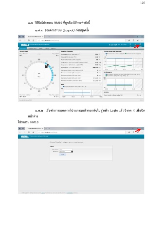 102 ๑.๗ วิธีปิดโปรแกรม NM10 ที่ถูกต้องให้กระทำดังนี้ ๑.๗.๑ ออกจากระบบ (Logout) ก่อนทุกครั้ง ๑.๗.๒ เมื่อทำการออกจากโปรแกรมแล้วจะกลับไปสู่หน้า Login แล้วจึงกด X เพื่อปิด หน้าต่าง โปรแกรม NM10