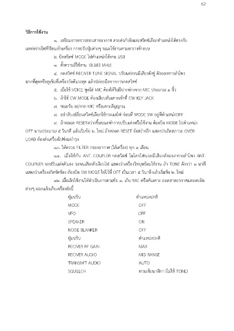 ๖. ถ้าใช CW MODE ต้องเสียบคันเคาะเข้าที่ CW KEY JACK