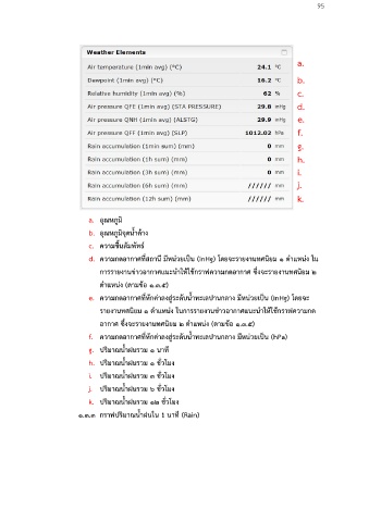 d. ความกดอากาศที่สถานี มีหน่วยเป็น (inHg) โดยจะรายงานทศนิยม ๑ ตำแหน่ง ใน