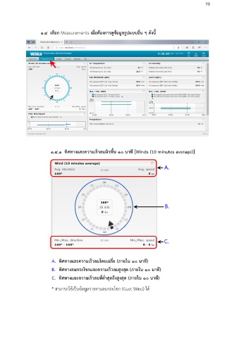 A. ทิศทางและความเร็วลมโดยเฉลี่ย (ภายใน ๑๐ นาที)