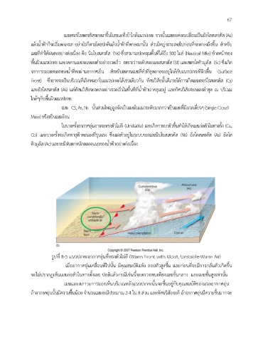 รูปท 8-5 แนวปะทะอากาศอุ่นททรงตัวไม่ดี (Warm Front with Moist, Unstable-Warm Air)