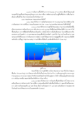 พนดินเย็นลง อากาศที่สัมผัสกับพนดินจะเย็นลงด้วย จนไอน้ าเกิดการกลั่นตัวเป็นหมอก ในกรณีที่ลมสงบหรือ