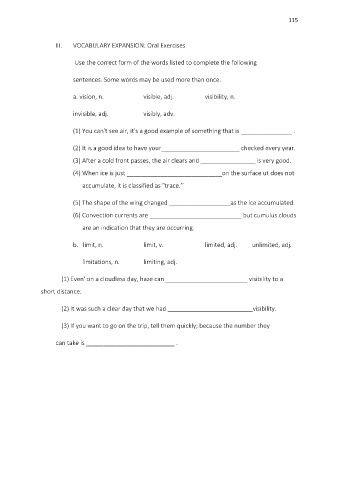 III. VOCABULARY EXPANSION: Oral Exercises