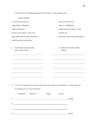 4. List the following terms used to describe the intensity of turbulence. in the order of