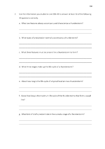 d. What three stages make up the life-cycle of a thunderstorm?